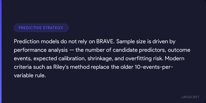 In predictive studies, the central question is not, “Can I detect a statistically significant effect?” but rather, “Can I build a model that will perform reliably in future patients?”