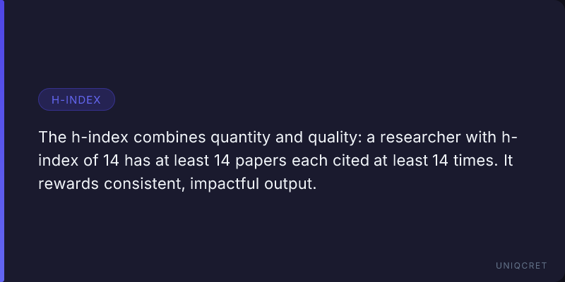 A researcher has an h-index of h if they have h publications that have each been cited at least h times.