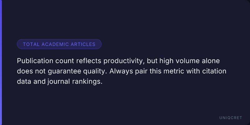 However, a high number of publications does not necessarily indicate high quality. Therefore, this metric must be considered alongside other indicators.